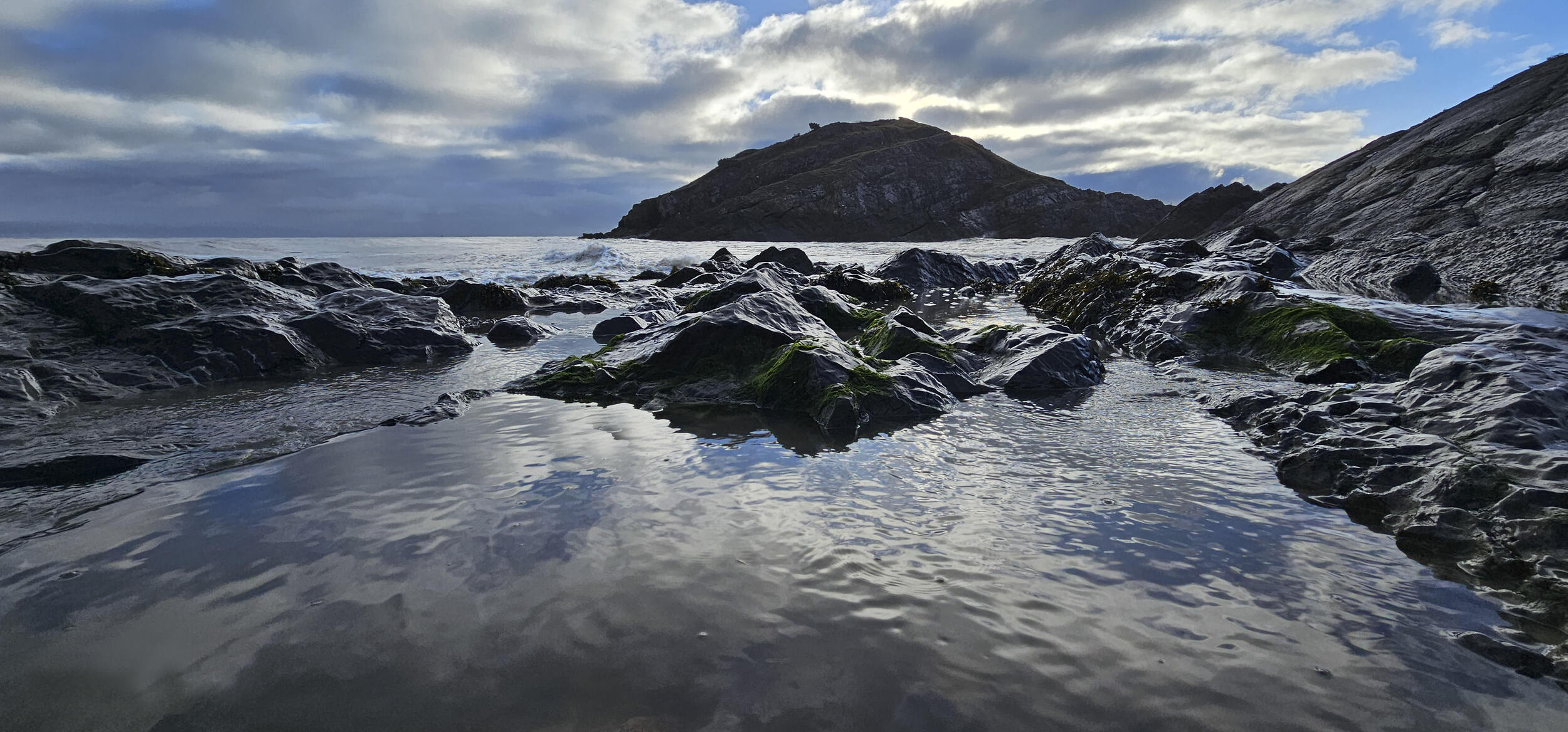Here we have a fantastic photo of a rockpool showing mumbles inner island in the background, the photo looks so inviting.